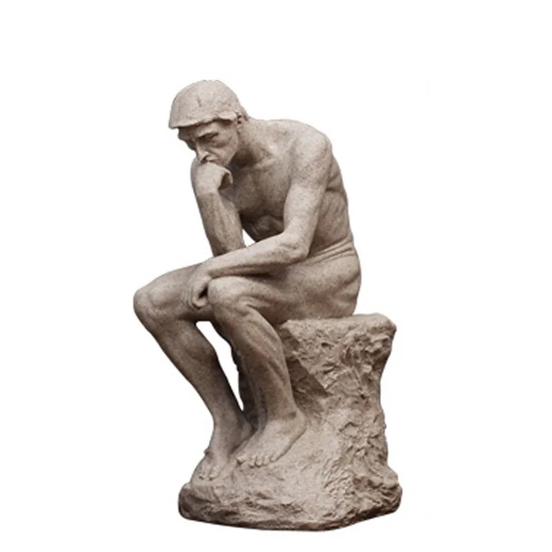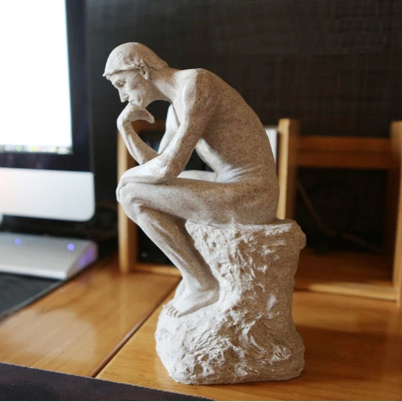 BEST QUALITY Personality sitting on a stone to think about life Home sculpture Abstract art Thinker resin statue